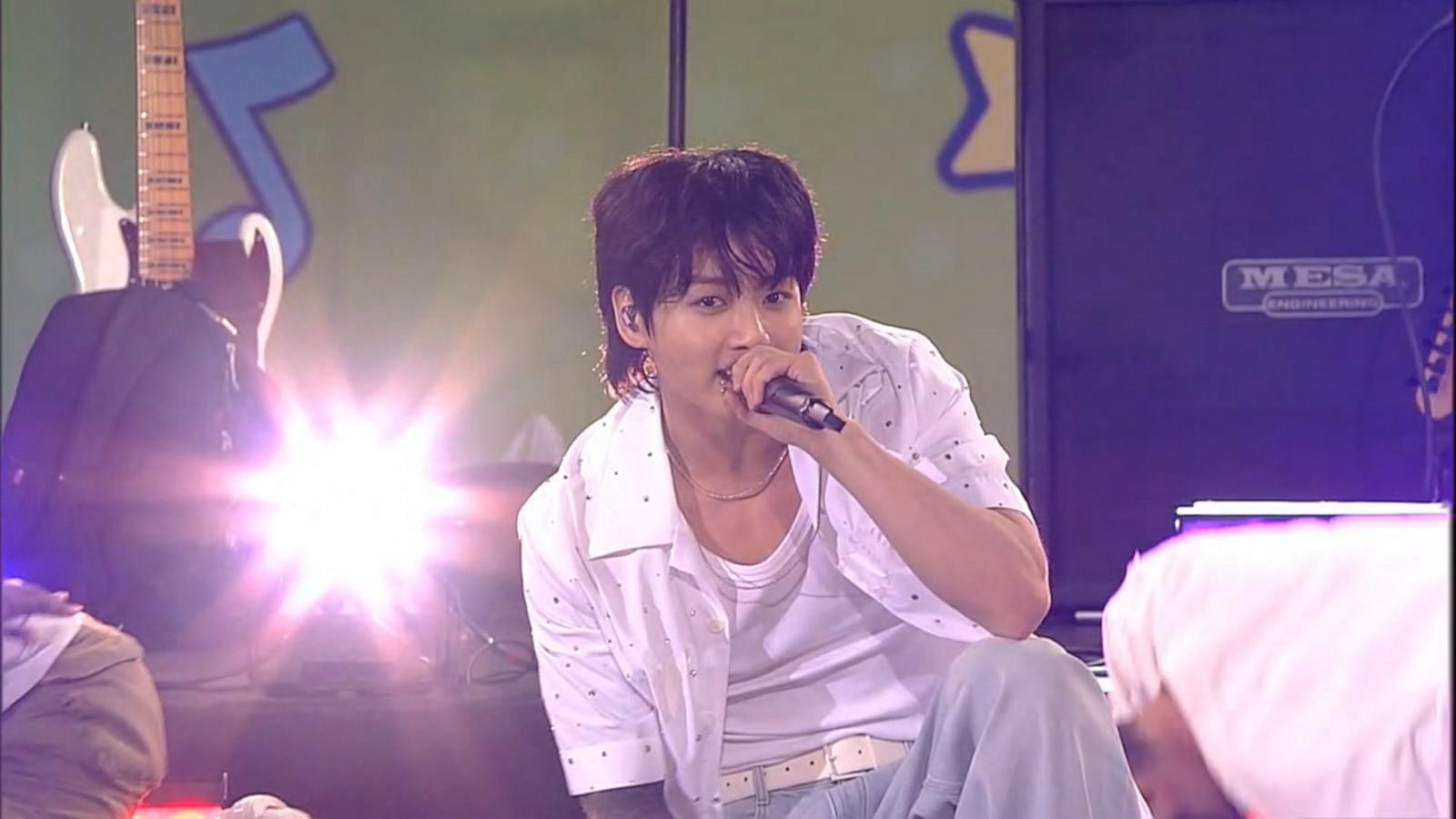 Logo depois do lançamento do videoclipe de seu single “SEVEN”, Jeon Jung-kook, integrante do grupo de K-Pop BTS, apresentou a música ao vivo pela primeira vez, nesta sexta-feira (14). O cantor fez a alegria dos fãs ao surgir no palco do “Good Morning America” com a performance da canção que abre os trabalhos de seu primeiro álbum solo. Na ocasião, milhares de fãs compareceram para prestigiar o lançamento.