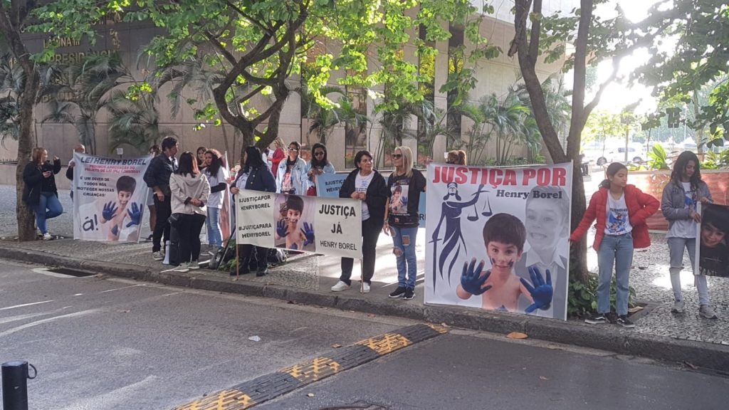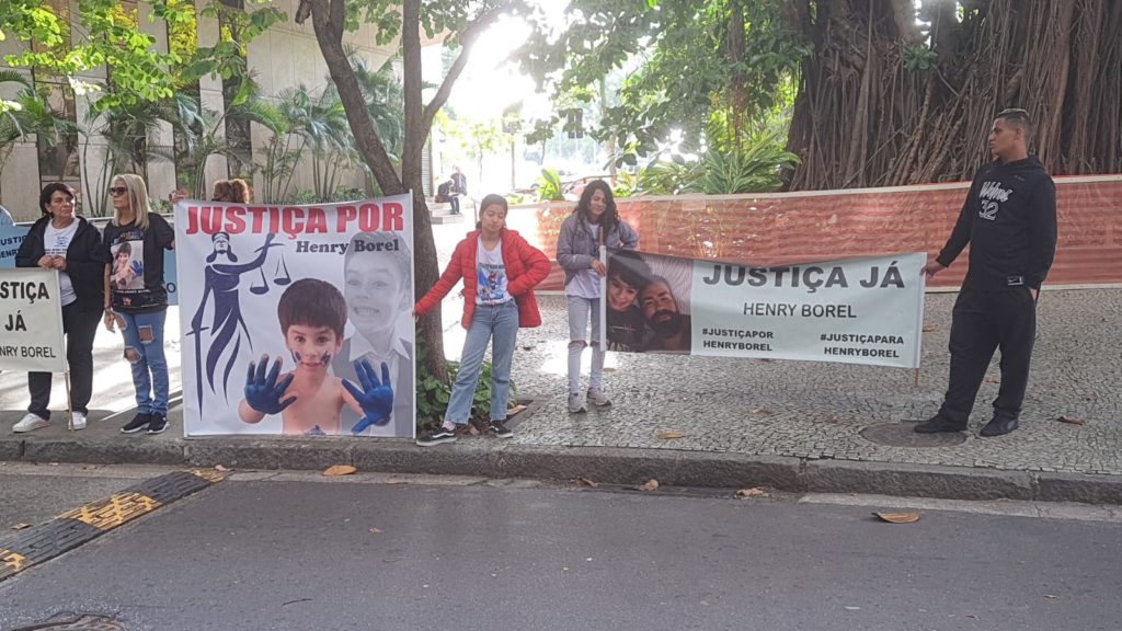 Caso Henry Borel: Manifestantes fazem ato antes de audiência no Tribunal de Justiça