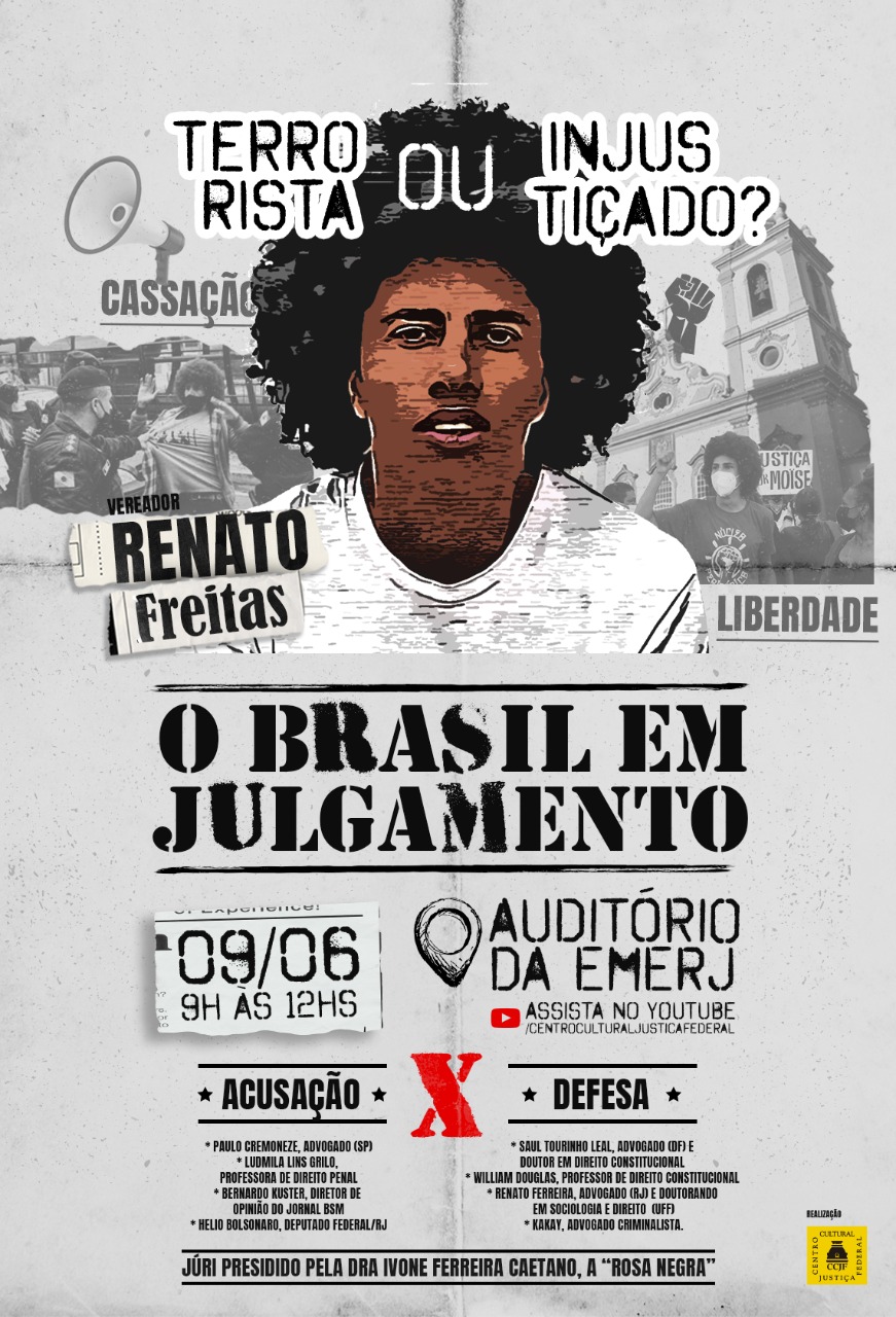 A polarização que toma conta do país ganhará holofotes nesta quinta-feira (9), em julgamento simulado no Rio de Janeiro sobre o caso do vereador Renato Freitas (PT), cujo mandato pode ser cassado a qualquer momento, sob acusação de invadir uma igreja com manifestantes em Curitiba. O grupo protestava contra o assassinato do congolês Moïse Mugenyi Kabagambe, crime ocorrido em janeiro, no Rio, e que teria tido motivações racistas.