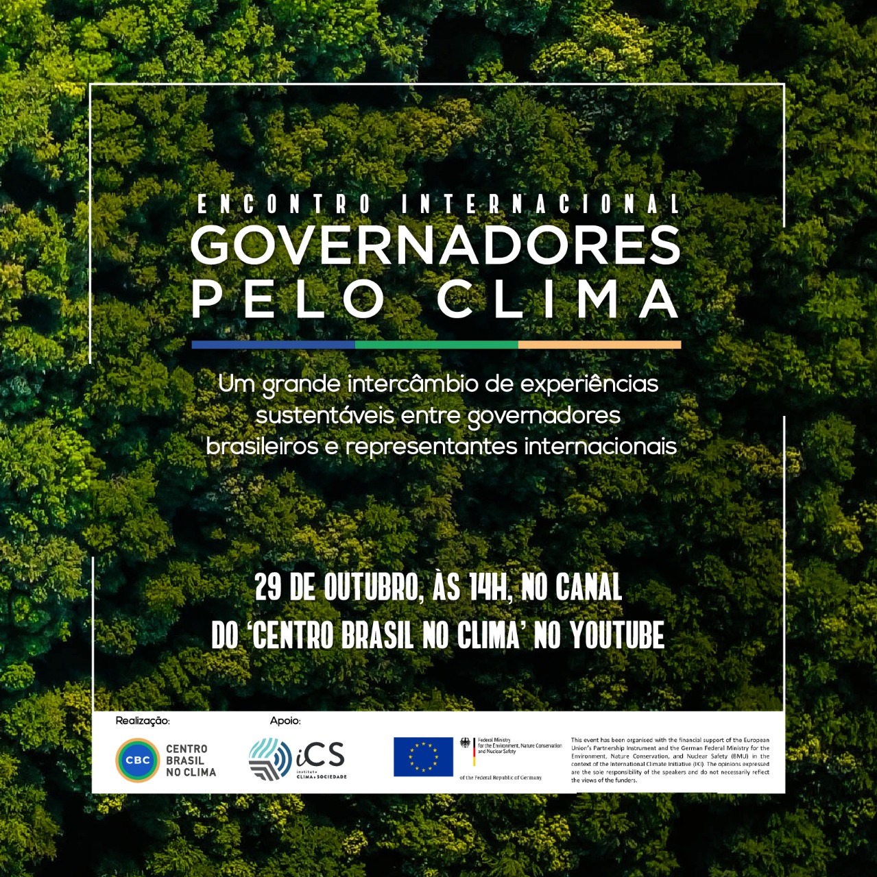 O evento começa às 14h e pode ser acompanhado ao vivo em http://bit.ly/GovernadoresPeloClima2020.