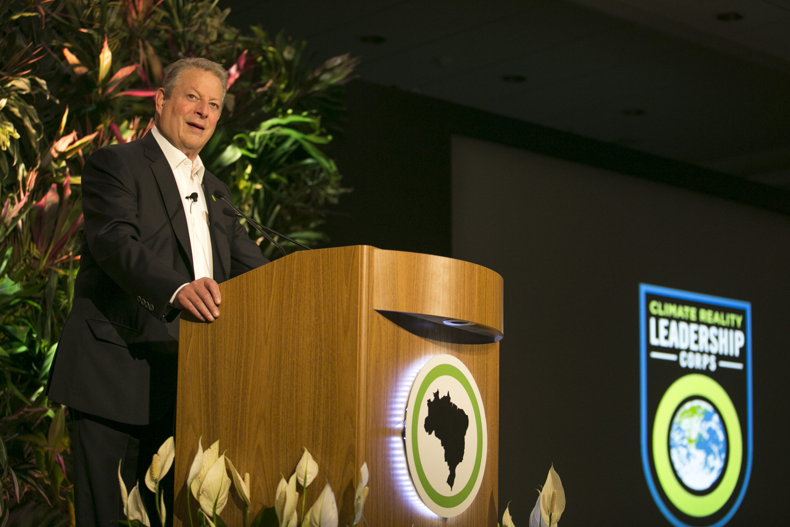 Al Gore durante o primeiro treinamento de Lideranças Climáticas na América do Sul, em 2014, no Rio de Janeiro, Brasil. (Divulgação)