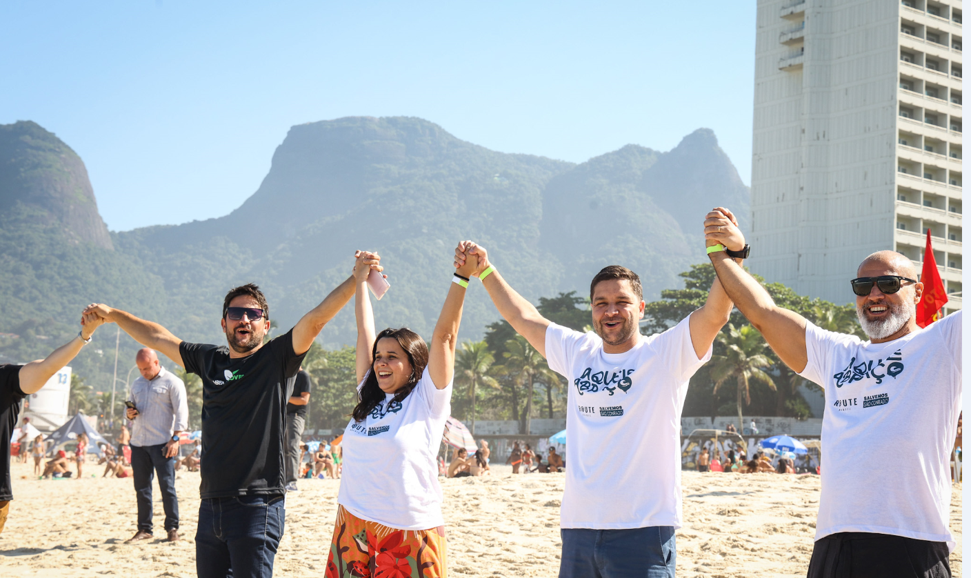 Vice-governador do Rio participa, no Dia Mundial dos Oceanos, de abraço coletivo na praia de São Conrado
