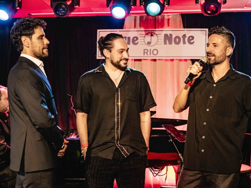 Renor Thiago Arancam, DJ Fábio Lopes e Vallent no palco do Blue Note Rio.