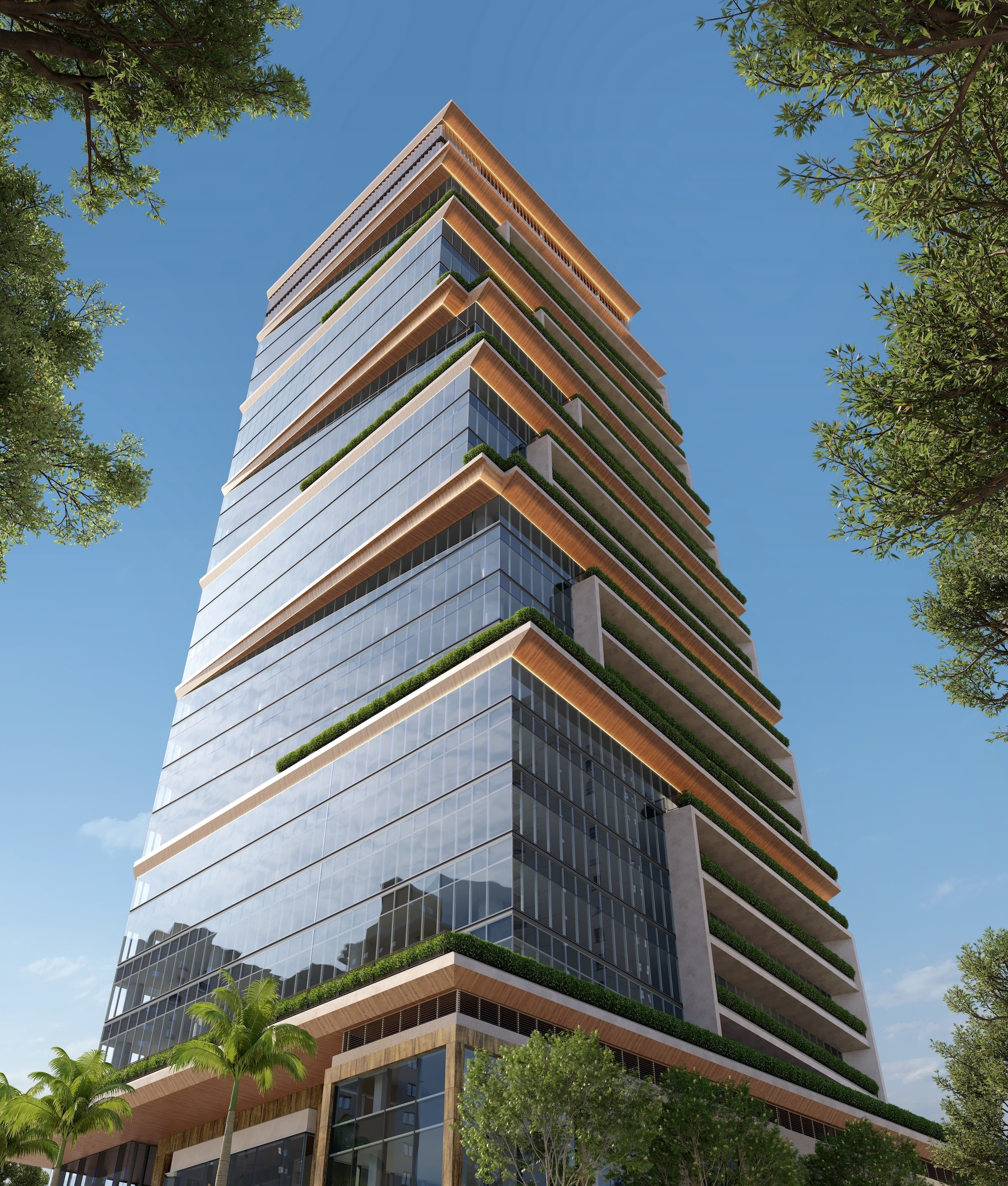 Com 6.495 m² de área total de terreno e 22 pavimentos, o empreendimento é composto por duas torres: uma dedicada aos escritórios corporativos, com 31.341 m² de área locável BOMA distribuída em 22 andares, e a outra, que abriga 51 apartamentos e as 187 suítes do hotel. Já as 12 lojas do boulevard somam 2.559 m². “O mercado imobiliário está adaptando os conceitos de uso misto para atender às novas dinâmicas de trabalho, estimulando o fluxo de pedestres de modo a contribuir para o desenvolvimento local”, acrescenta o executivo.