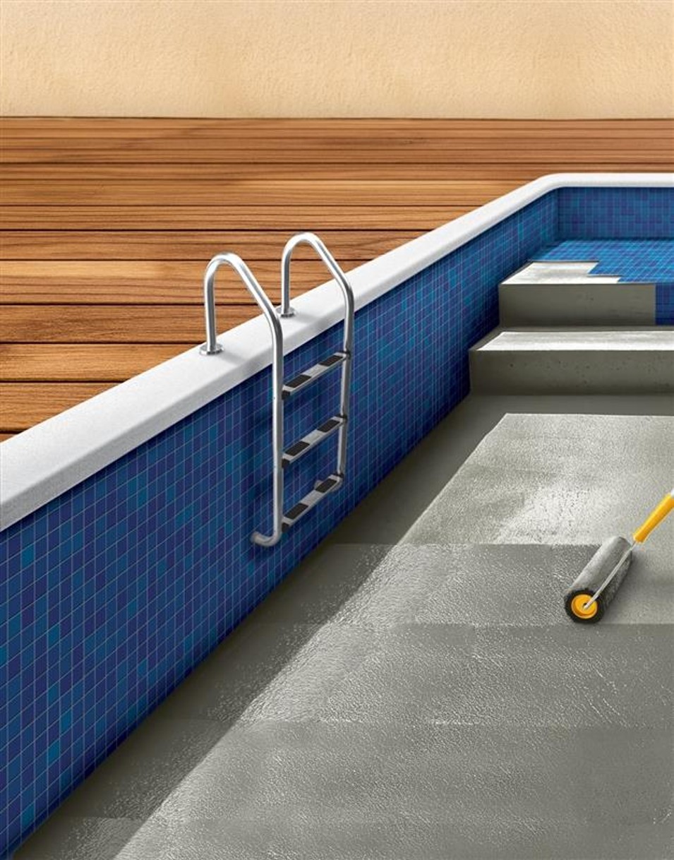 Piscinas exigem impermeabilizantes com alta elasticidade e resistência, capazes de suportar contato contínuo com a água.
