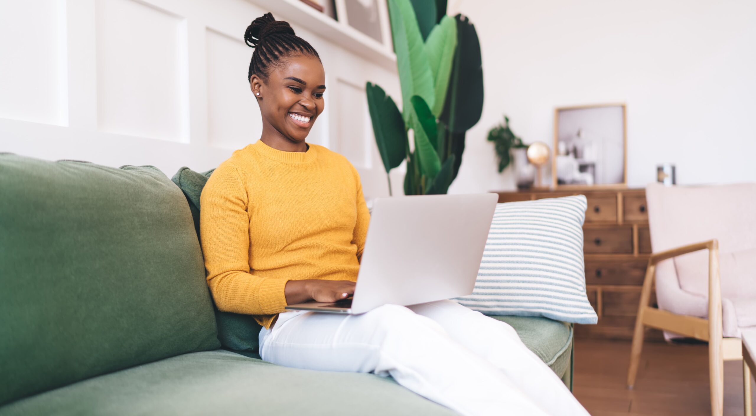 Jovem negra pensando sobre seu propósito de carreira