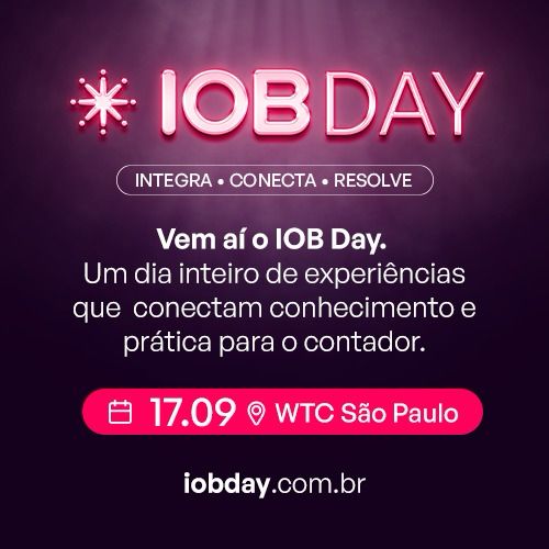 A IOB, plataforma de inteligência em legislação e tecnologia avançada para resolver os desafios de contadores e empresas, anuncia o início das vendas de ingressos para o IOB Day, evento que acontecerá no dia 17 de setembro de 2025, no WTC Events Center, em São Paulo. Será um encontro para profissionais contábeis e das áreas financeira, fiscal, trabalhista, previdenciária, com palestras e painéis que unem conhecimento e prática nos assuntos que mais impactam o dia a dia dos contadores e empresas.
