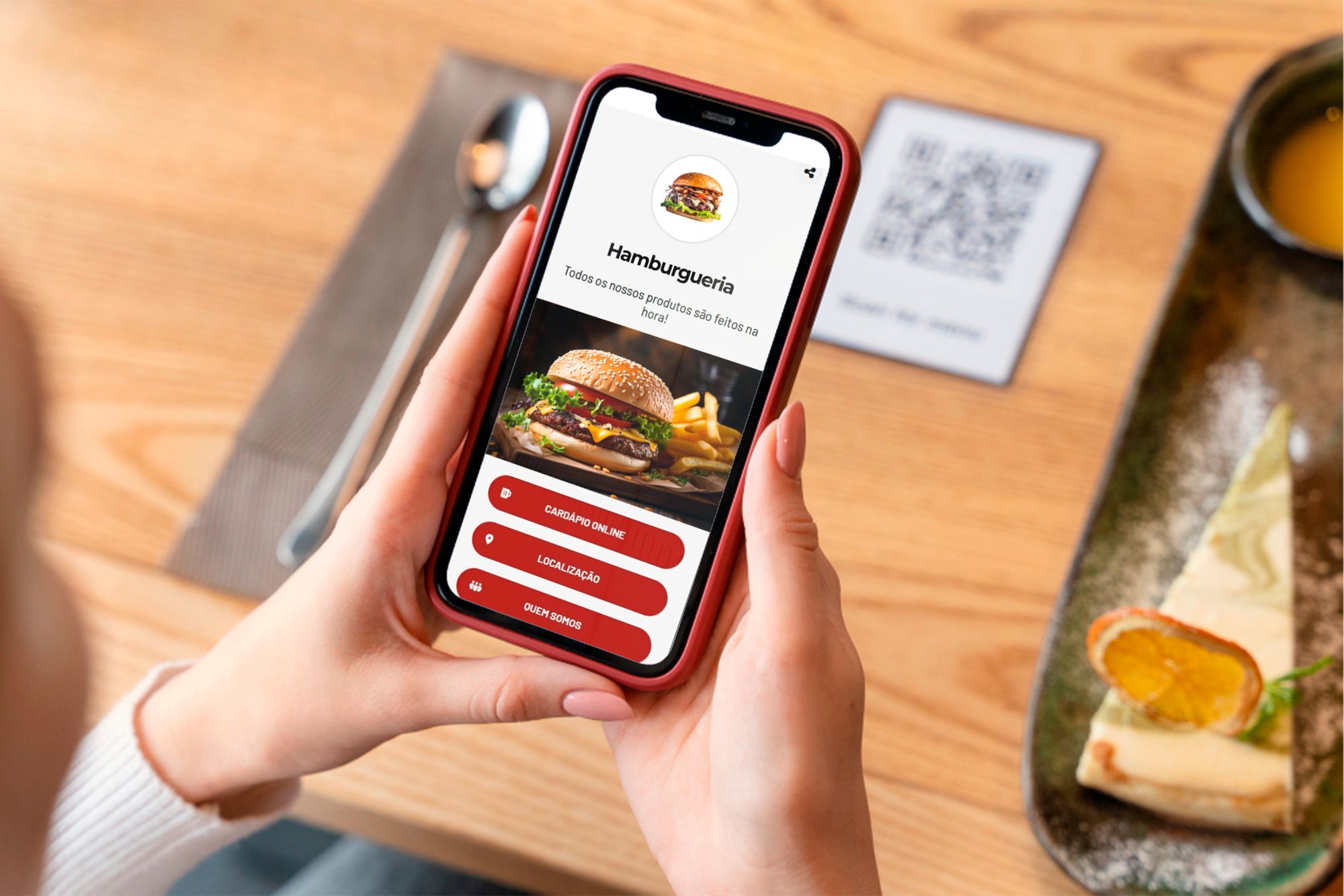 Já o cardápio digital integrado ao site e o QR code nas mesas facilitam a visualização dos produtos pelo cliente, otimizando a experiência de uso e permitindo atualizações instantâneas. Outra funcionalidade são as vitrines de recursos que centraliza informações essenciais como redes sociais, contato, avaliações, localização e o cardápio online.