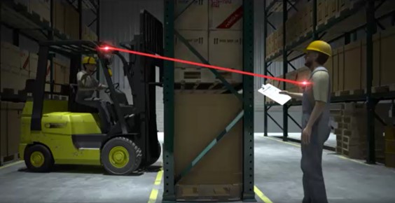 Empilhadeiras detectam presença de pedestres por meio de ondas eletromagnéticas e dispositivos alertam operadores por meio de sinais visuais e vibrações