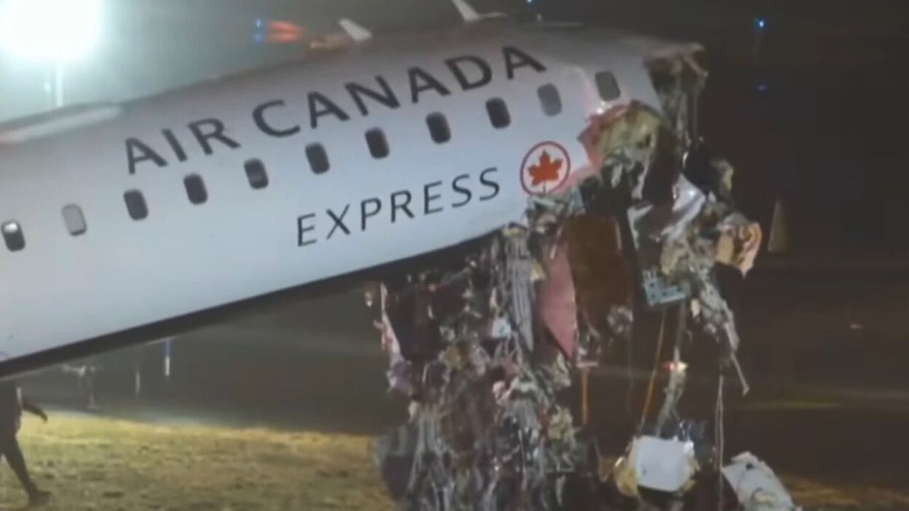 Imagens que circularam nas redes sociais mostram o nariz da aeronave levantado e com danos visíveis. O jato era operado pela Jazz Aviation, empresa parceira regional da Air Canada.