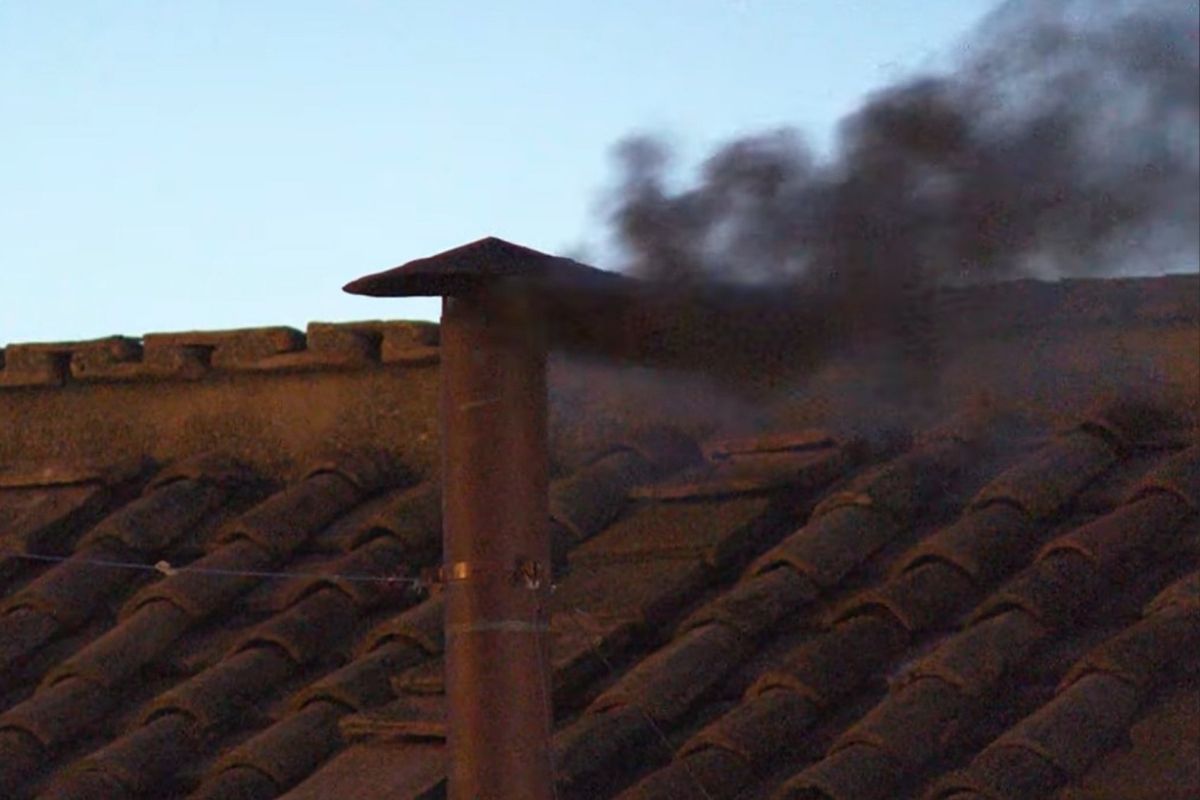 A fumaça que sai da chaminé instalada na Capela Sistina serve como um sinal visual global do resultado das votações. A cor preta indica que nenhum nome atingiu o número mínimo de votos. Se o fumo for branco, isso significa que um novo papa foi eleito.