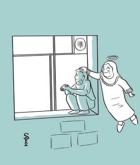 A história de Jihad Al-Suwaiti viralizou e foi tema até de charge, destacada no Twiiter por Mohamad Safa, ativista dos direitos humanos e representante da ONU na região.