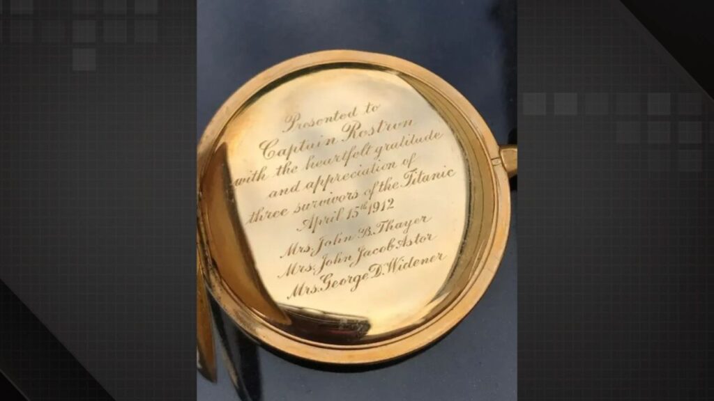 O relógio, que pertencia ao capitão Rostron, foi doado a ele em 1912, após ele ter liderado a operação de resgate que salvou mais de 700 pessoas do mar congelado.