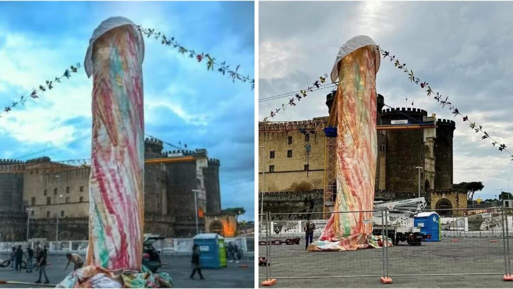 Escultura de 12 metros, intitulado "Tu Si 'Na Cosa Grande" custou R$ 1,2 milhãoUm controverso monumento em forma de pênis foi inaugurado na Piazza Municipio, no centro de Nápoles, Itália, na última quinta-feira (10). Com impressionantes 12 metros de altura, a obra intitulada “Tu Si ‘Na Cosa Grande” (“Você é uma grande coisa”) gerou uma onda de reações negativas entre moradores e turistas. O custo da escultura, cerca de R$ 1,2 milhão, também foi alvo de críticas, que questionaram tanto seu valor artístico quanto a escolha do tema.