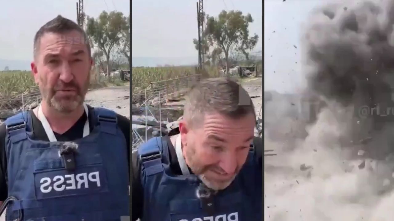O cinegrafista Ali Rida, que filmava o repórter britânico Steve Sweeney durante uma transmissão ao vivo no sul do Líbano, registrou o momento em que um míssil caiu a poucos passos do jornalista. Os dois tiveram ferimentos leves e passam bem, segundo a emissora russa RT, para a qual Sweeney trabalha.