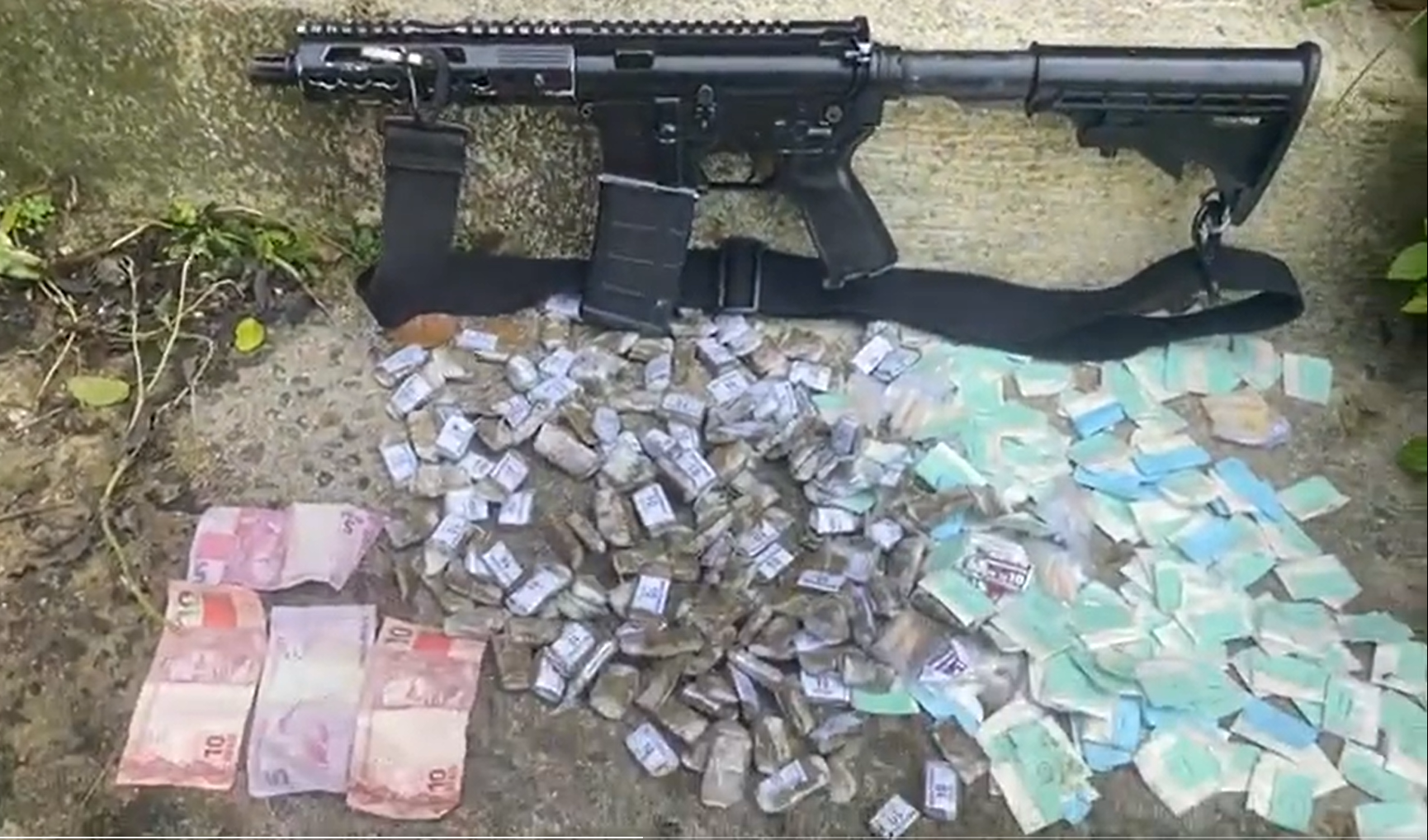 Na ação, foram apreendidos ainda um fuzil, três pistolas, drogas, dinheiro em espécie e cinco rádios comunicadores.