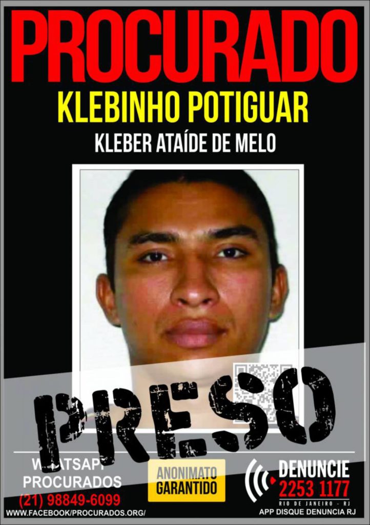 Policiais Militares conseguiram localizar e prender o foragido da Justiça, Kleber Ataíde de Melo, de 40 anos, conhecido como “Klebinho Potiguar”, natural de Natal, no Rio Grande do Norte. Ele foi preso no camelódromo da Rua Uruguaiana, no Centro do Rio, enquanto trabalhava em um quiosque.