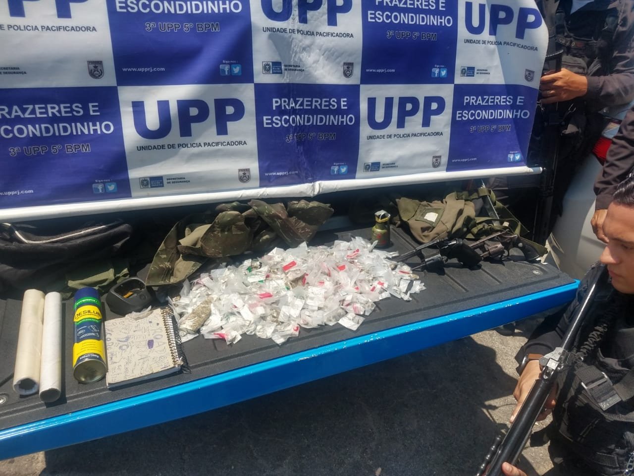 Policiais militares da UPP/Prazeres E Escondidinho prenderam um homem apontado como chefe do tráfico de drogas na localidade conhecida como Corado, em Santa Tereza, na Região Central do Rio.