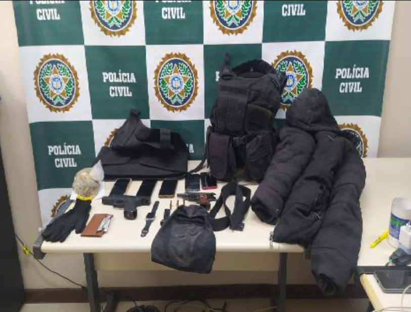 No momento da prisão, os assaltantes estavam uniformizados com balaclava, roupas táticas e coletes