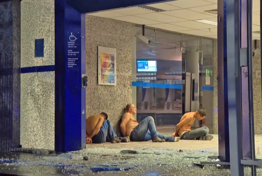 Na ação criminosa, que aconteceu na madrugada desta quinta-feira (11), sete criminosos foram presos. Ao menos, 12 criminosos com fuzs participaram da ação. Um deles foi baleado.