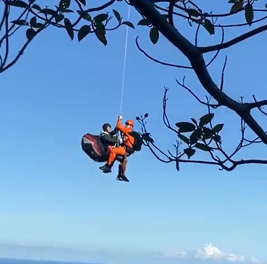 Bombeiros do 1° Grupamento de Socorro Florestal e Meio Ambiente (1° GSFMA) e do Grupamento de Operações Aéreas (GOA) do Corpo de Bombeiros do Rio salvaram um homem neste sábado (05), numa ocorrência de queda de parapente, na rampa de voo da Pedra Bonita, localizada no Parque Nacional da Tijuca.