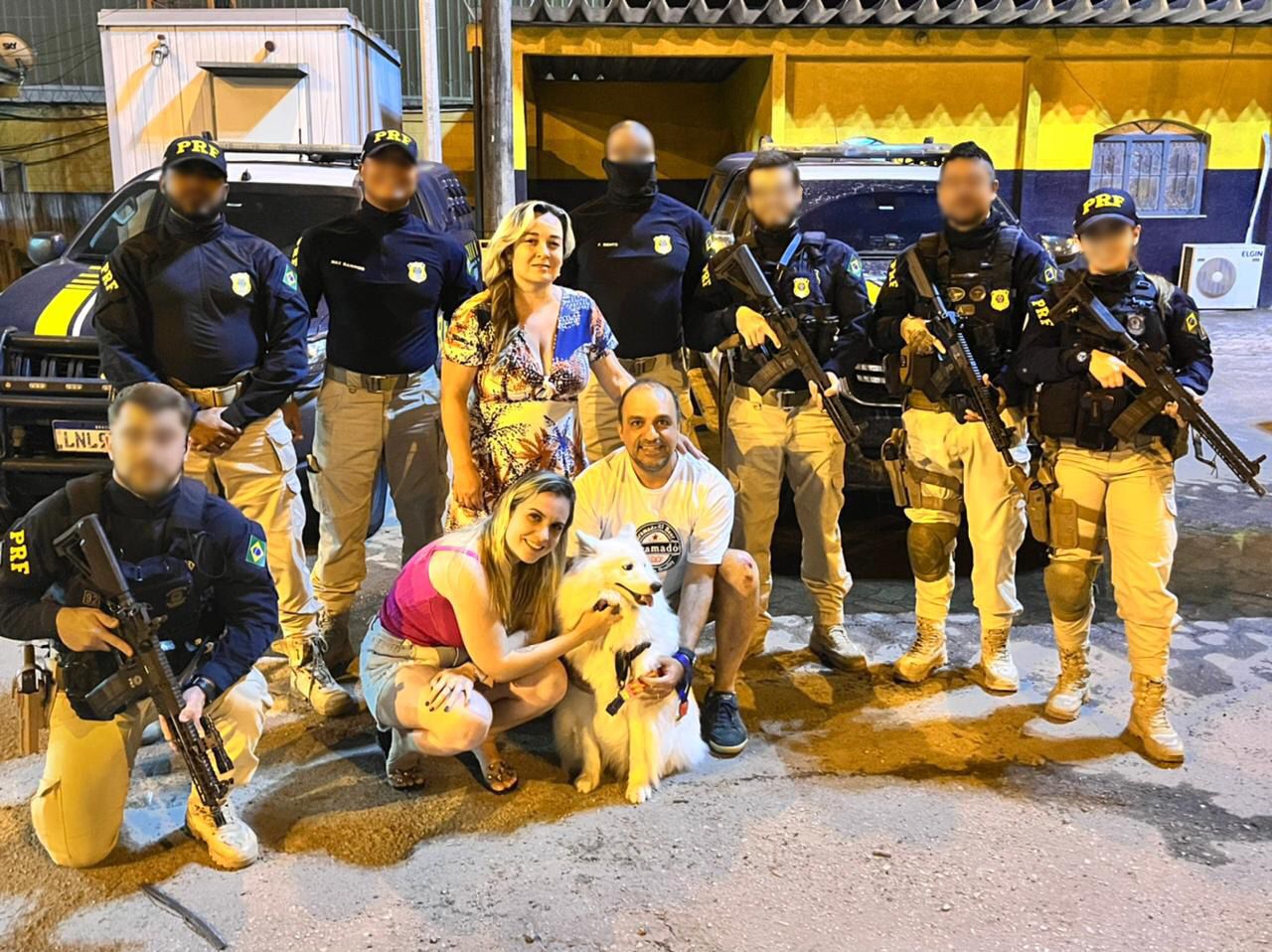 Um cachorro da raça Samoieda foi recuperado pela Polícia Rodoviária Federal, após ter sido levado juntamente com um veículo roubado na BR-101, em São Gonçalo, na Região Metropolitana do Rio.