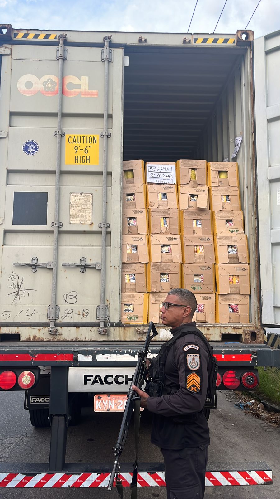 Policiais militares do 16º BPM (Olaria) recuperaram uma carga de cestas básicas que havia sido roubada na Rua Sargento Aquino com a Rua Vergueiro da Cruz, em Olaria, Zona Norte do RIo, nesta segunda-feira (31).