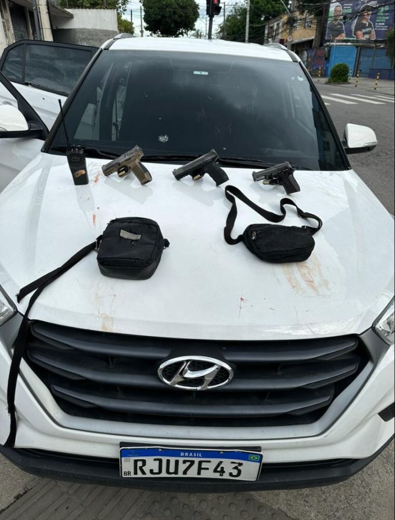 Durante a ação, ocorreu a poucos metros da estação do metrô do Irajá, foram apreendidos no carro, trê pistolas, rádio comunicador e munições. Nenhum policial ficou ferido.
