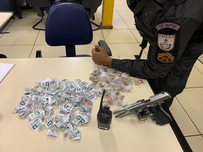 Durante a ação, os Pms apreenderam uma pistola, munições, um rádio de comunicação e drogas.