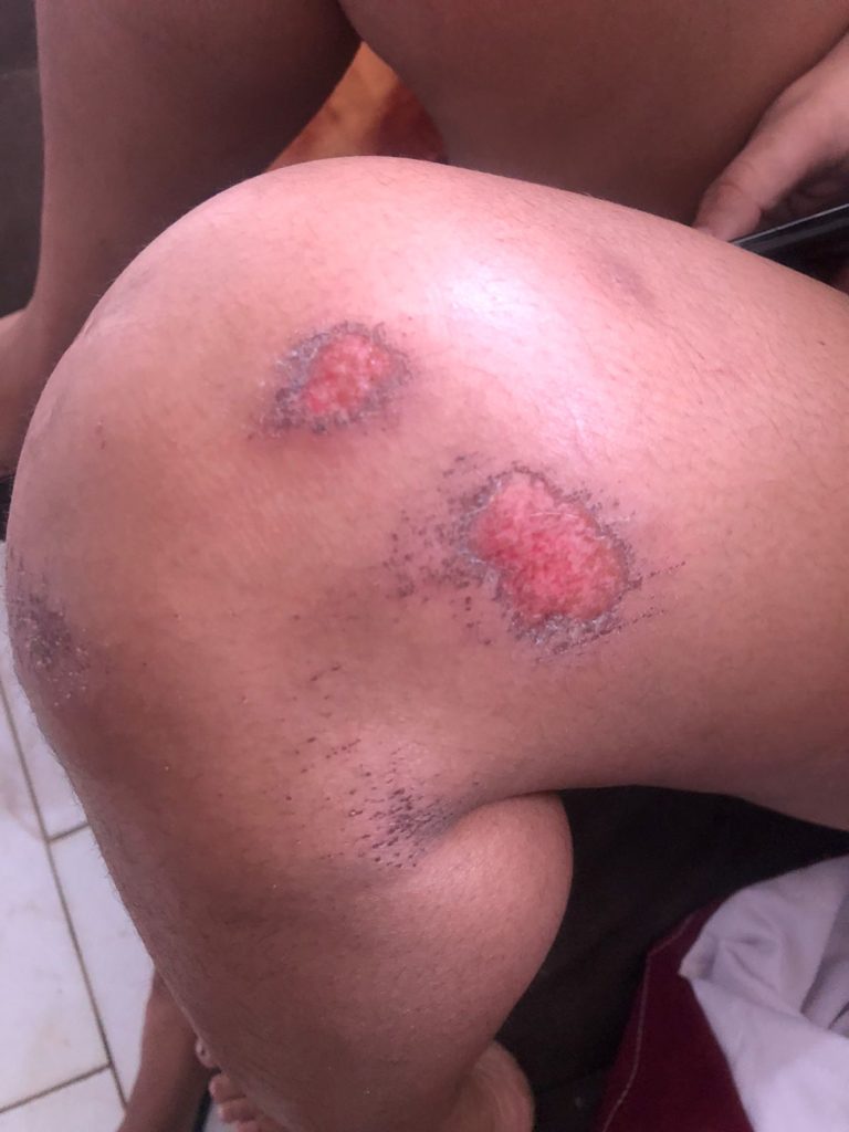 Raphael deu socos, chutes, puxões de cabelo e queimou Victoria com guimbas de cigarro. Os socos na boca foram tão fortes que a jovem está com os lábios inchados e mal consegue falar. Ela ainda tem arranhados e roxos por todo o corpo, além de dores de cabeça causadas pelos puxões no cabelo.