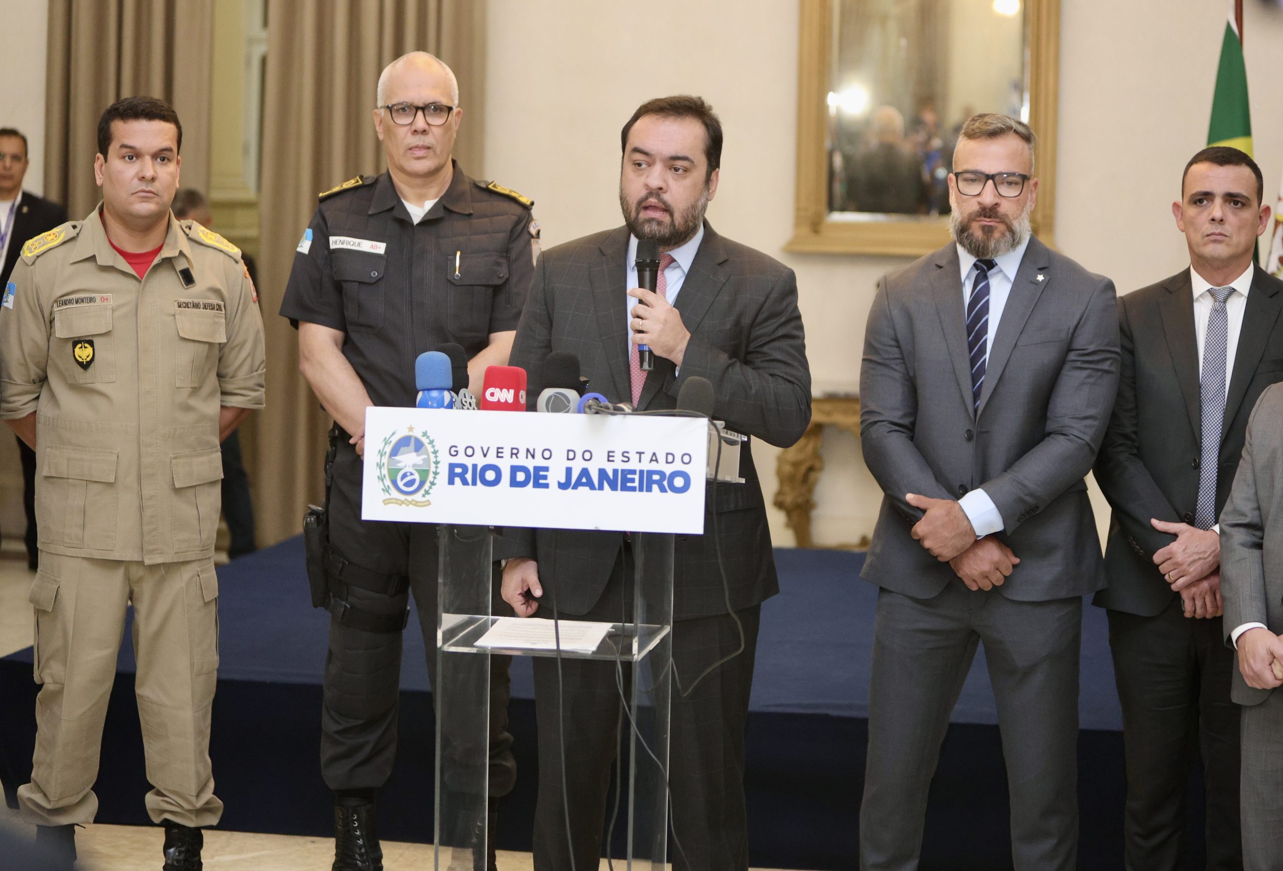 Cláudio Castro determinou ainda reforços a prédios públicos e monumentos no Rio. No final da reunião, o governador gravou uma mensagem para a população. Veja o conteúdo na íntegra abaixo.