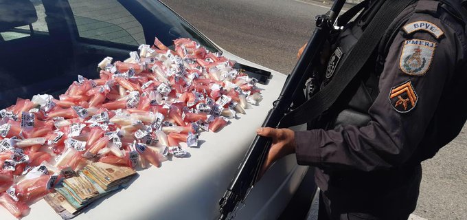 Com eles, os policiais do Batalhão de Policiamento em Vias Expressas apreenderam uma bolsa com grande quantidade de drogas e dinheiro.
