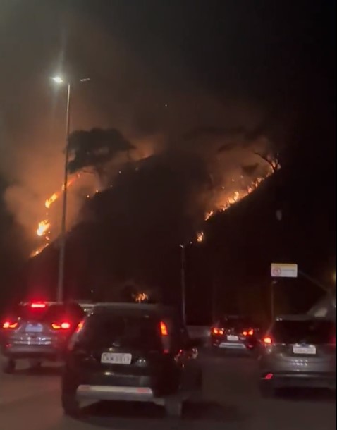 Um incêndio de grandes proporções aconteceu na vegetação que cerca o Túnel do Joá, também conhecido como Túnel de São Conrado, na Zona Sul do Rio, na noite desta sexta-feira (11). De acordo com o Corpo de Bombeiros, o fogo pegou na encosta do Morro da Joatinga.