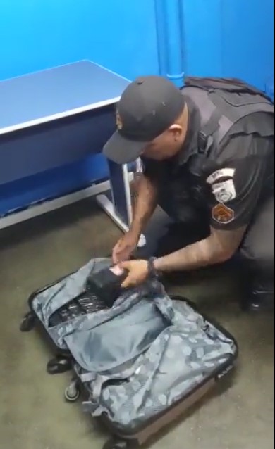 Durante patrulha do Batalhão de Polícia Turística, os agentes avistaram comportamento suspeito da mulher e realizaram a revista da sua mala. Foram encontrados 20 kilos de maconha e criminosa presa em flagrante por tráfico de drogas.
