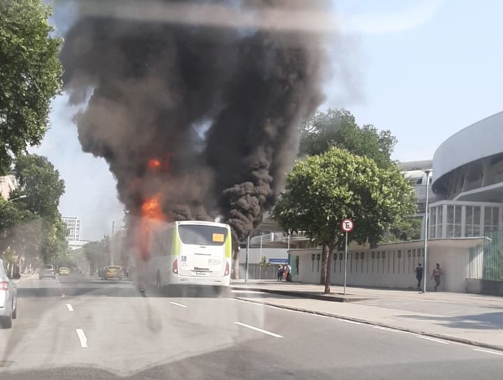 Ônibus pega fogo perto do Maracanã e causa transtornos na manhã desta segunda-feira