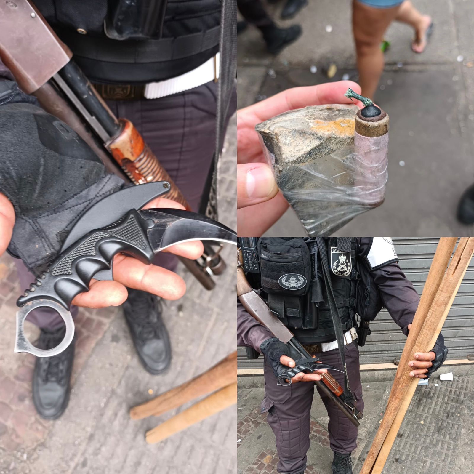 Já durante à tarde, policiais militares do Batalhão Especializado de Policiamento em Estádios (BEPE) apreenderam pedaços de madeira, um soco-inglês e um artefato explosivo nos arredores do Viaduto de Madureira quando realizavam a escolta de torcedores.