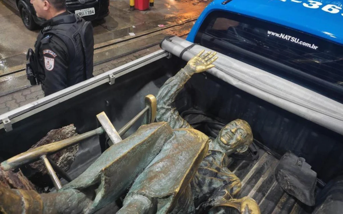 Entretanto, os homens a levaram para a restauração. A estátua foi entregue para os agentes da delegacia. Em uma publicação nas redes sociais, o prefeito Alexandre Martins confirmou a recuperação da obra. “A estátua já está voltando para a cidade. Foi muito importante as câmeras de monitoramento, identificar as pessoas, o carro”, disse o prefeito.
