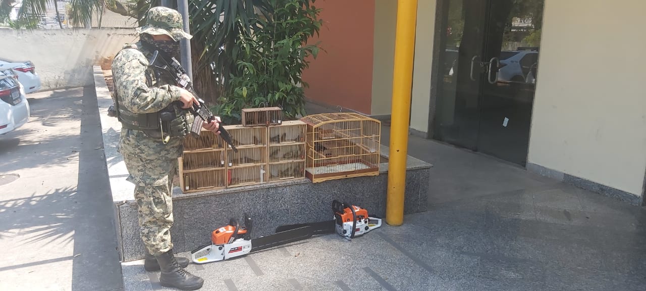 Polícia Ambiental apreende pássaros e motosserras em feira na zona Norte