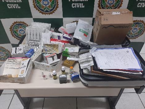 Durante a ação, os policiais apreenderam materiais de uso proibido em Biomedicina, o que coloca em risco a saúde dos pacientes.