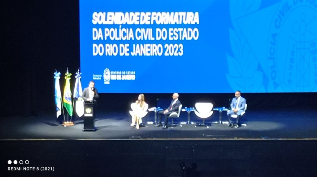O governador Cláudio Castro participou, no final da manhã desta quarta-feira (27), da formatura de novos agentes da Polícia Civil, em uma casa de show, na Gardênia Azul, na Zona Oeste da cidade. Também marcaram presença na solenidade, o Secretário de Estado de Segurança Pública, Victor Cesar dos Santos, o Secretário de Estado de Polícia civil, Marcus Amim e a diretora da Academia de Polícia Civil, Valéria Aragão.
