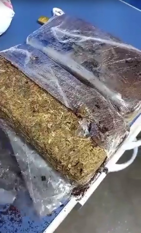 A maconha estava dividida em quatro tabletes de aproximadamente dois quilos cada, envolvidos em plástico coberto com café.