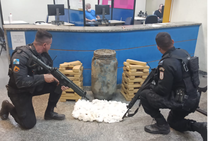 Policiais militares apreenderam 50 quilos de maconha e duas mil 576 pedras de crack, na Rua Medeiros, no Bairro Nova Holanda, em Macaé, na noite desta segunda-feira (26).