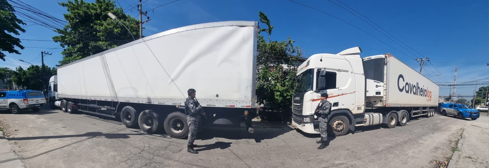 Segundo o comando no Batalhão de Rondas Especiais e Controle de Multidões, os veículos tinham sido interceptados por um criminoso que estava em uma moto no momento em que as carretas passavam pela Linha Vermelha.
