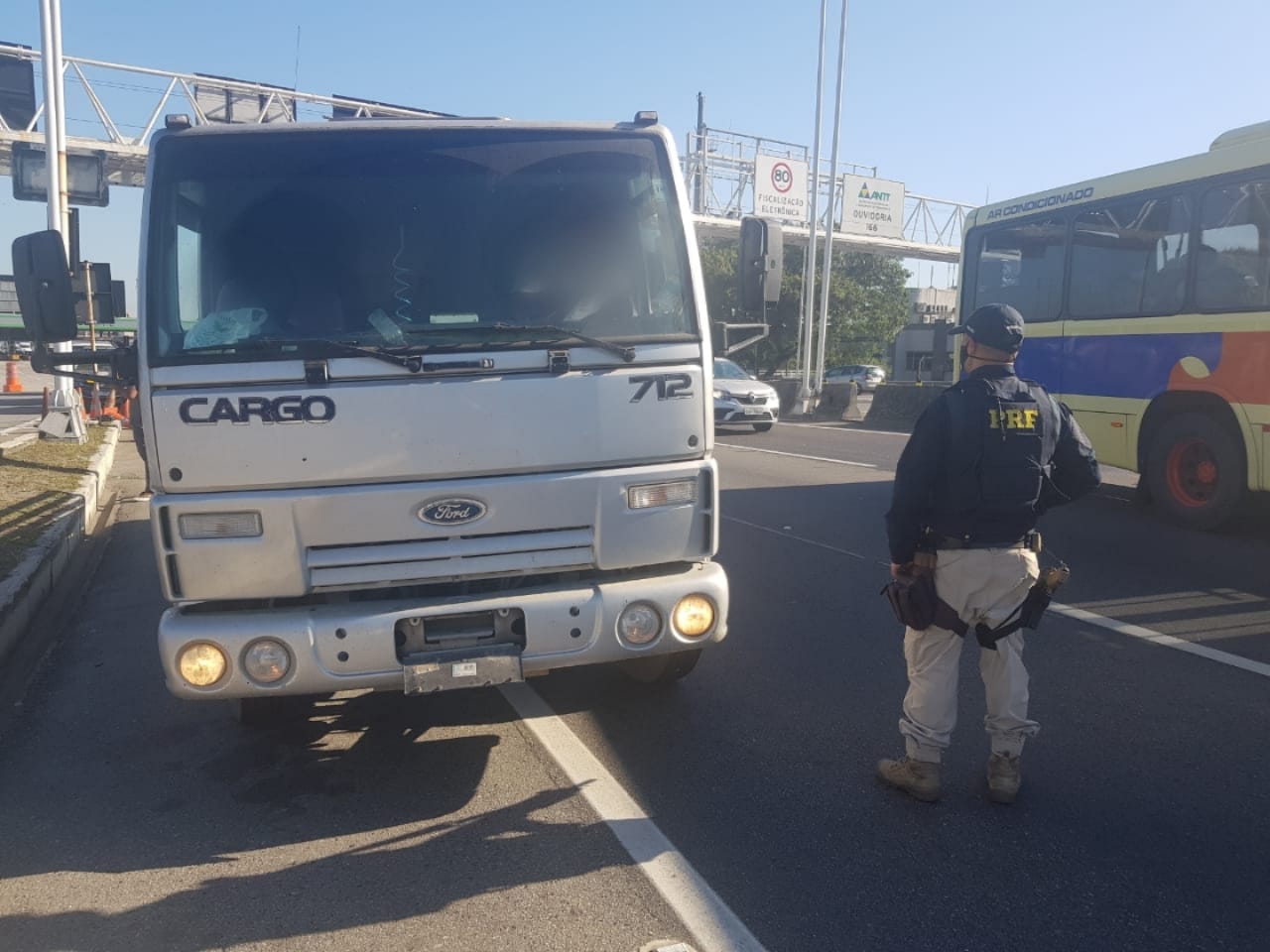 PRF flagra caminhão com placas sem visibilidade na Ponte Rio-Niterói