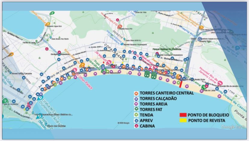 As áreas da festa e do entorno serão patrulhadas por aeronaves – helicópteros e drones do Grupamento Aeromóvel (GAM). As imagens também serão transmitidas em tempo real para o CICC e para o Carro Comando Móvel, que ficará estacionado em Copacabana.
