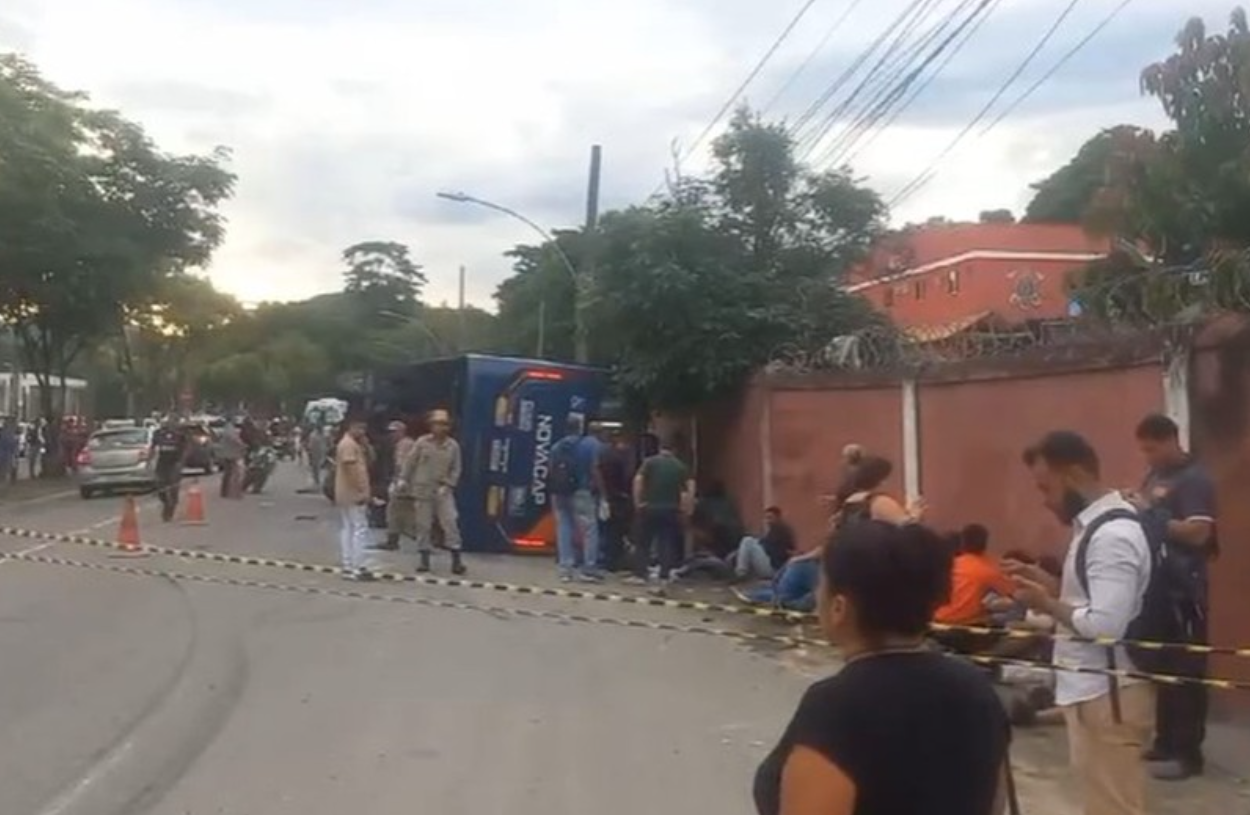 Três passageiros de ônibus que tombou são levados em estado grave para o Hospital Estadual Alberto Torres