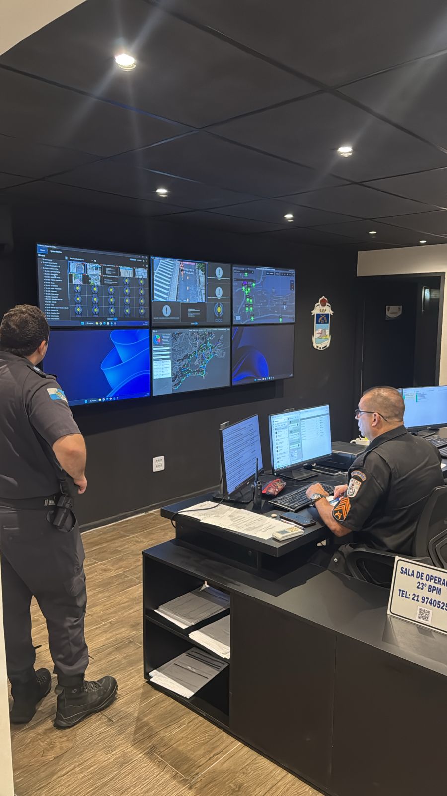 A nova sala também terá acesso em tempo real às imagens das câmeras corporais dos policiais de serviço em toda área de policiamento do 23° BPM (Leblon), visando o monitoramento e controle do efetivo policial por meio do GPS existente nas COPs, facilitando o deslocamento dos agentes em caso de acionamento dos militares, reduzindo o tempo de espera em casos de emergência.