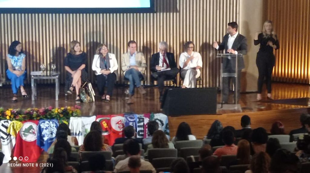 A abertura do evento ainda contou com as presenças da ministra Cida Gonçalves, do Ministério das Mulheres; a secretária-executiva da Secretaria-Geral da Presidência da República, Maria Fernanda Ramos Coelho; e o deputado Arlindo Chinaglia, representante do Brasil no Parlasul.