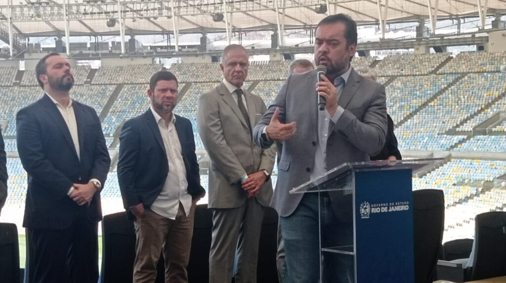 O governador Cláudio Castro assinou, na manhã desta sexta-feira (27), às 10h, a concessão do Complexo Maracanã. A empresa Fla-Flu Serviços S.A., composta pelo Clube de Regatas do Flamengo e Fluminense Futebol Clube, foi a vencedora do processo de licitação e será responsável pela gestão, operação e manutenção do equipamento esportivo, que engloba o Maracanã e Maracanãzinho, pelos próximos 20 anos. Cláudio Castro ressaltou o processo transparente e a lisura para administrar o equipamento.