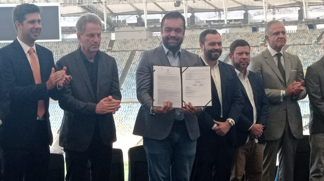 O governador Cláudio Castro assinou, na manhã desta sexta-feira (27), às 10h, a concessão do Complexo Maracanã. A empresa Fla-Flu Serviços S.A., composta pelo Clube de Regatas do Flamengo e Fluminense Futebol Clube, foi a vencedora do processo de licitação e será responsável pela gestão, operação e manutenção do equipamento esportivo, que engloba o Maracanã e Maracanãzinho, pelos próximos 20 anos. Cláudio Castro ressaltou o processo transparente e a lisura para administrar o equipamento.